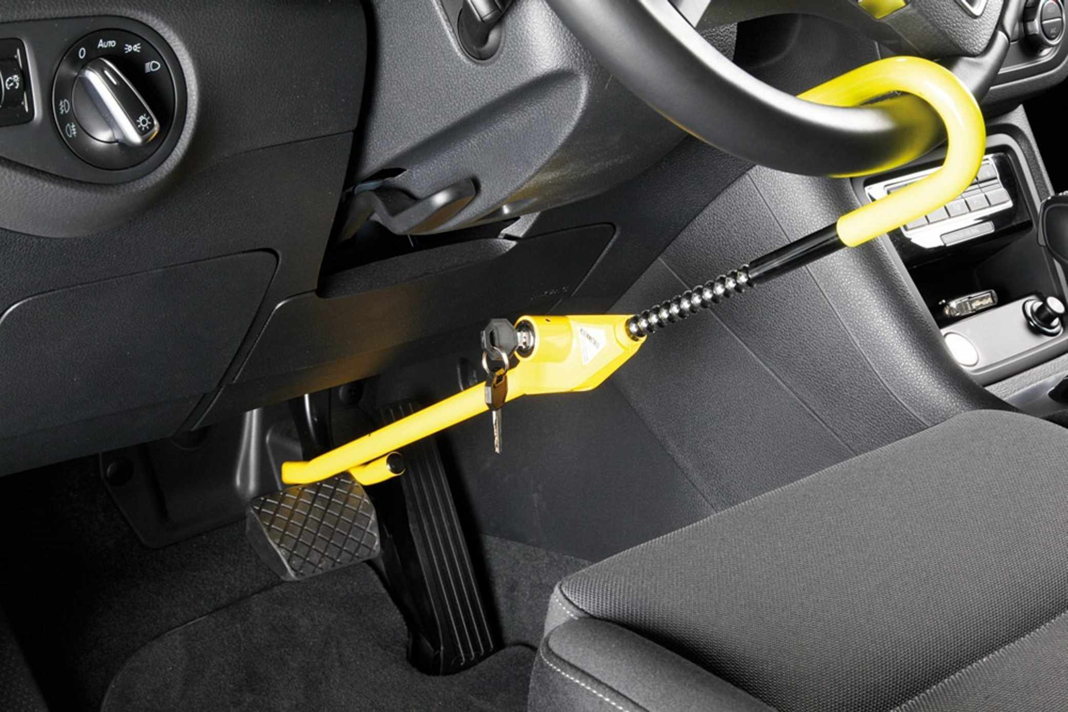 Einfach zwischen Lenkrad und Kupplungspedal eingehängt