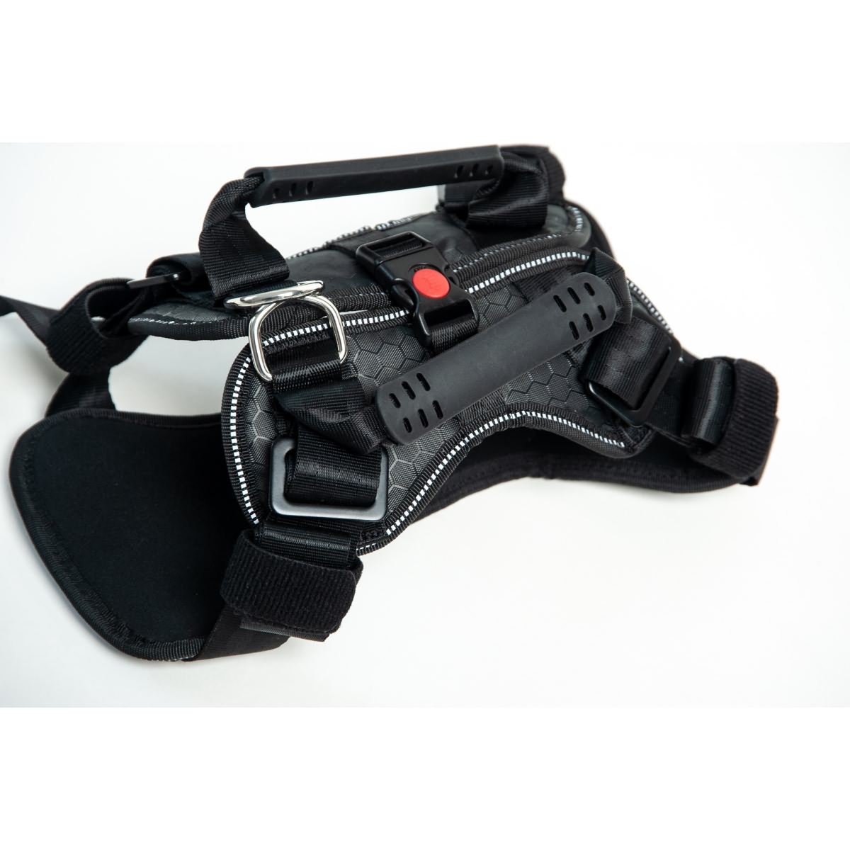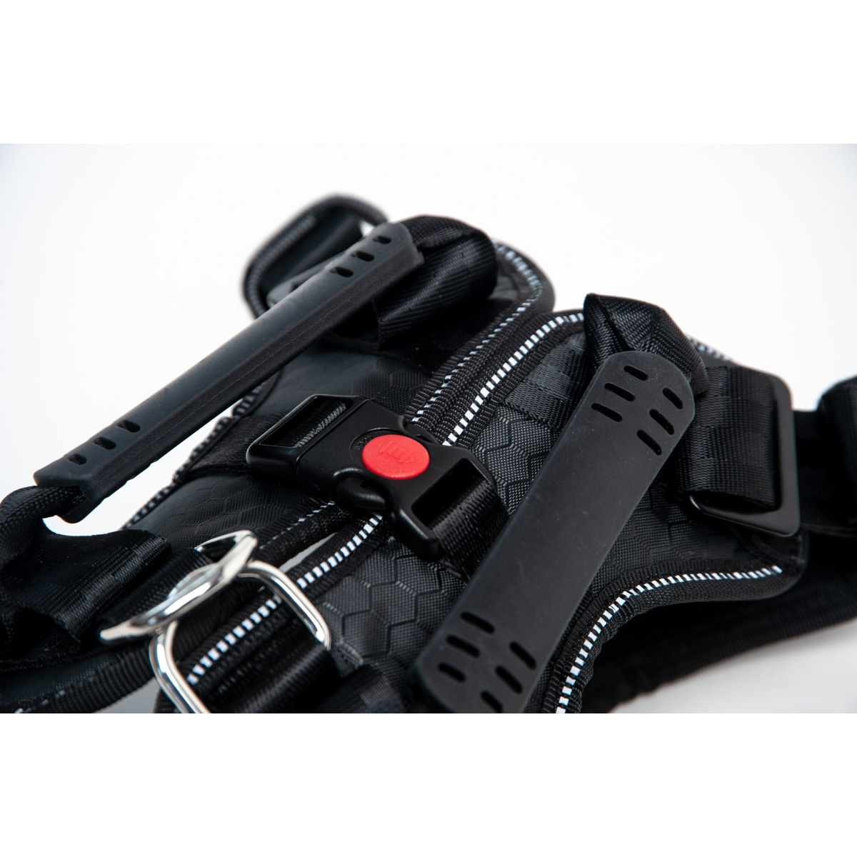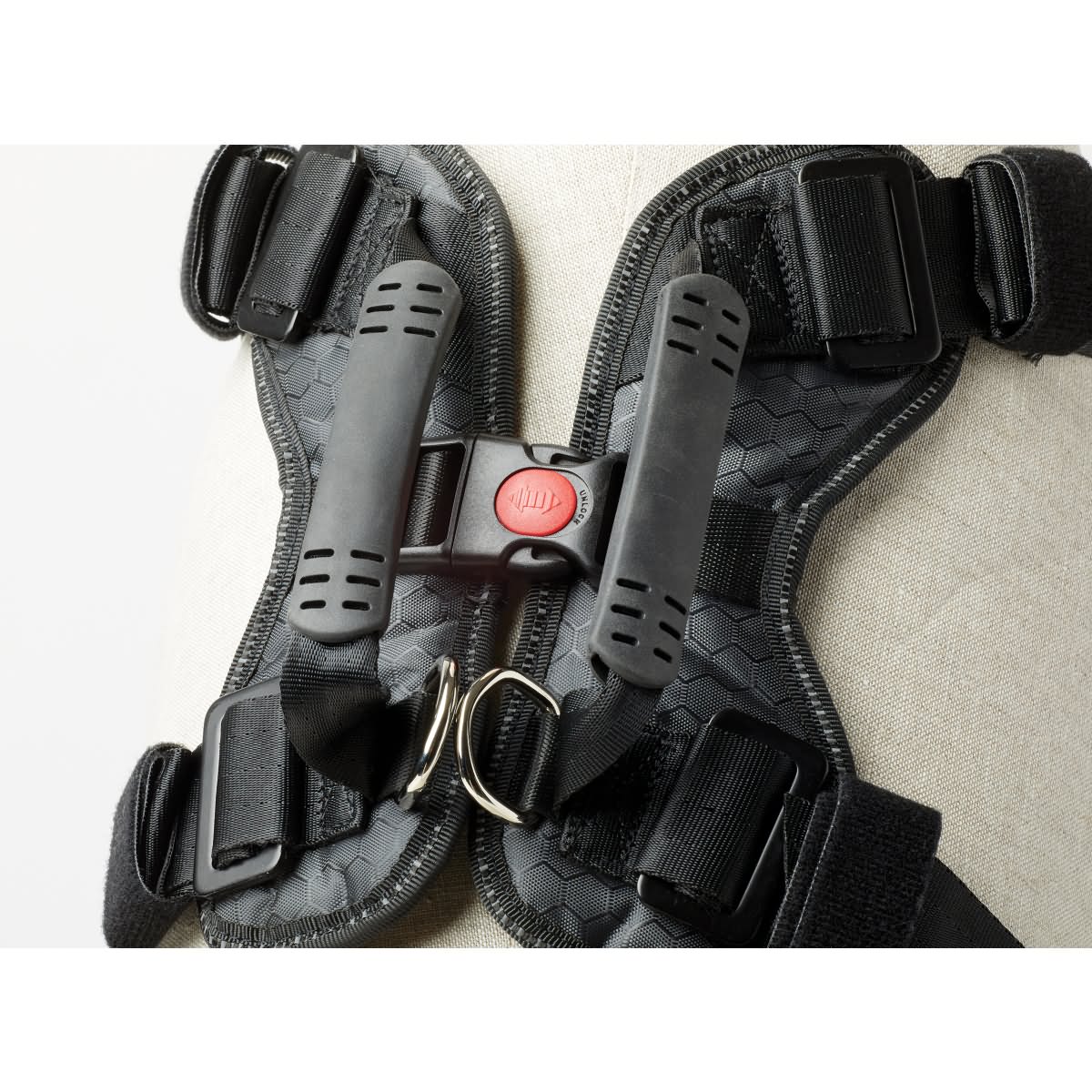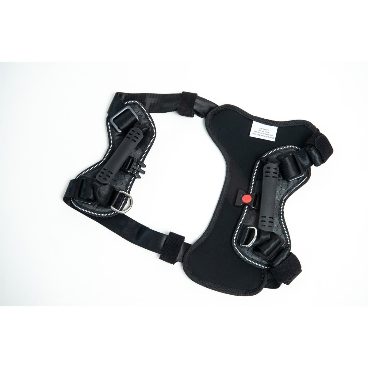 Long, high-strength polyester straps allow each harness to be adjusted to the appropriate body size of the quadruped.Once adjusted, the harness system can be put on in seconds and locked with a quick-release buckle.