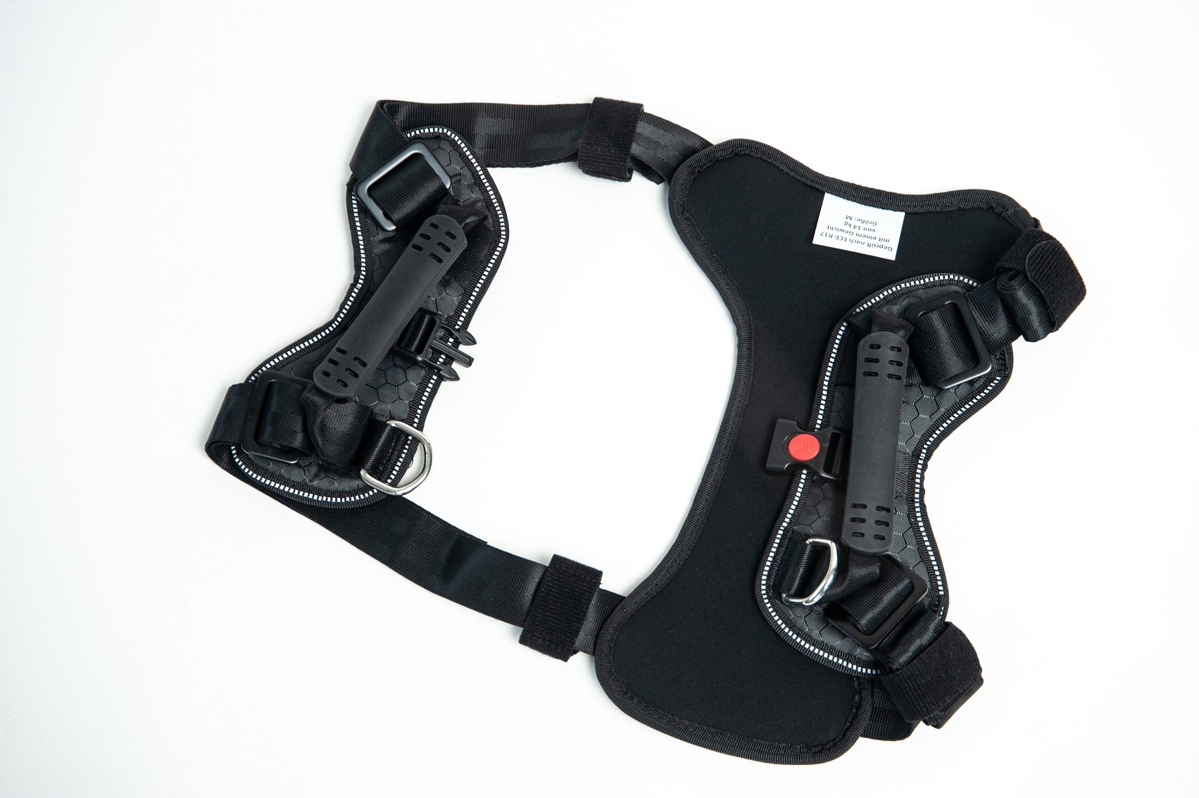 Size M: chest circumference approx. 38 - 83 cm, crash-tested for dogs up to 14 Kg, weight 0,4 Kg