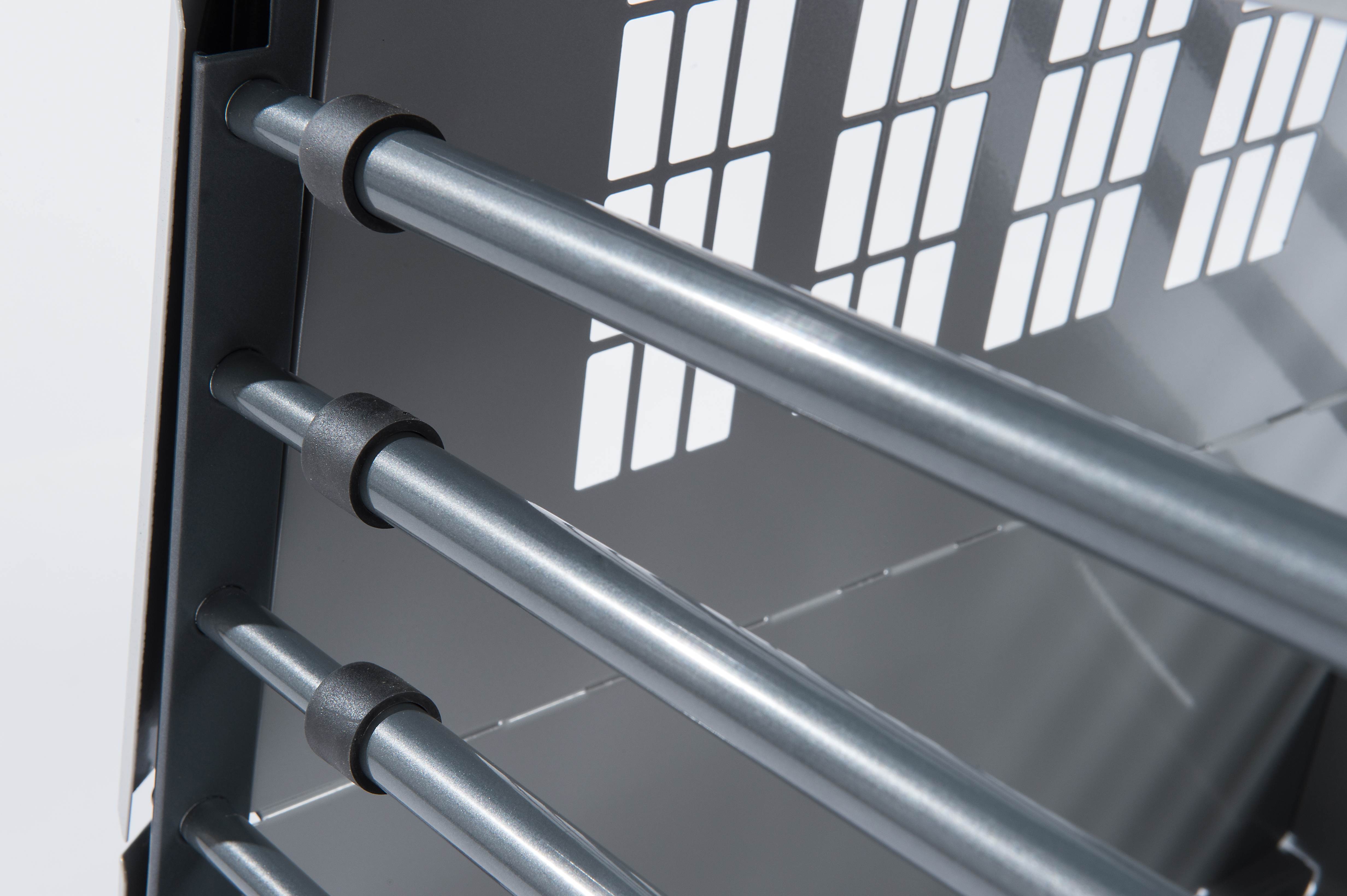 For optimal use of space the front and rear sides of all boxes are slightly inclined.