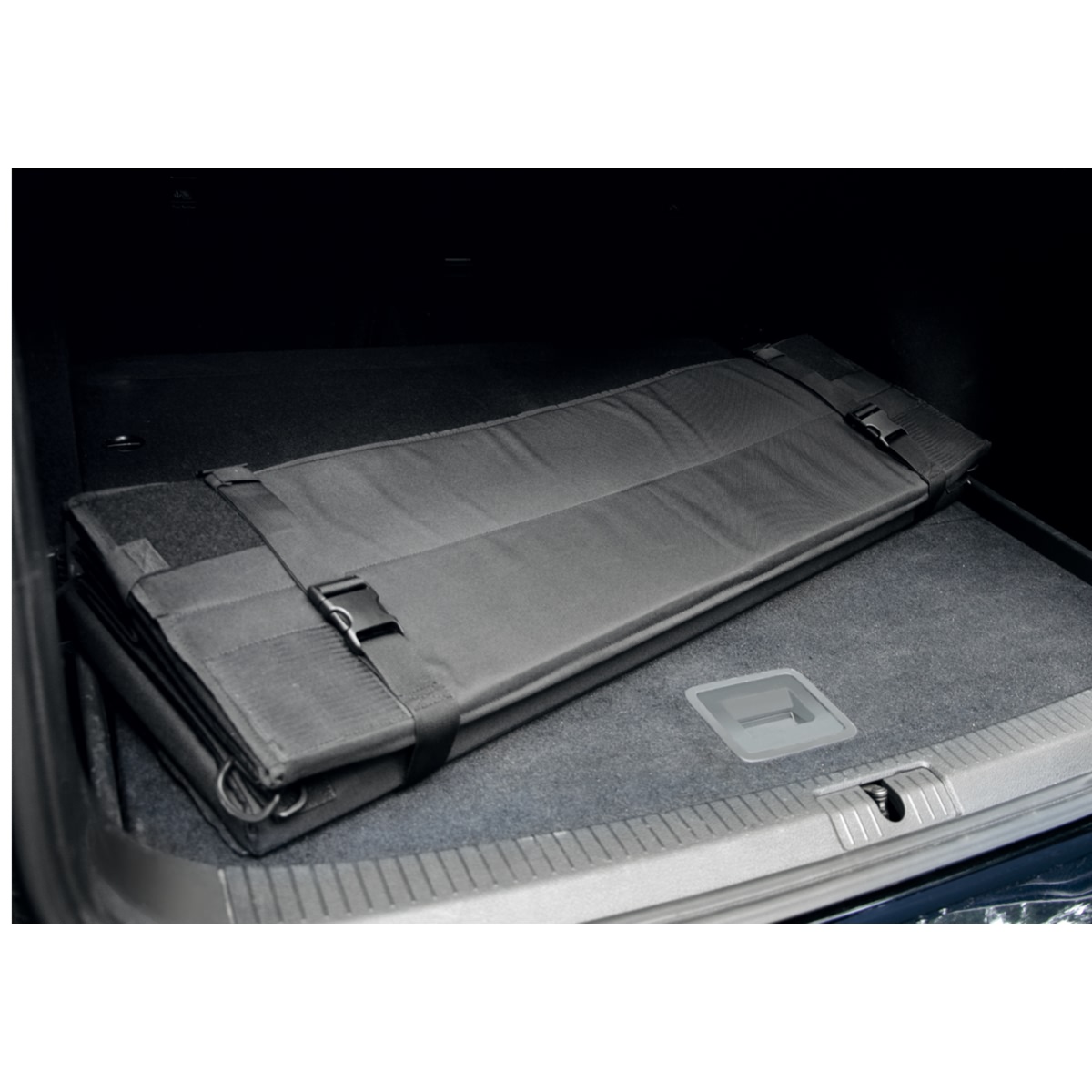 Sekundenschneller Ein- und Ausbau; kann zusammengefaltet platzsparend im Kofferraum transportiert werden
