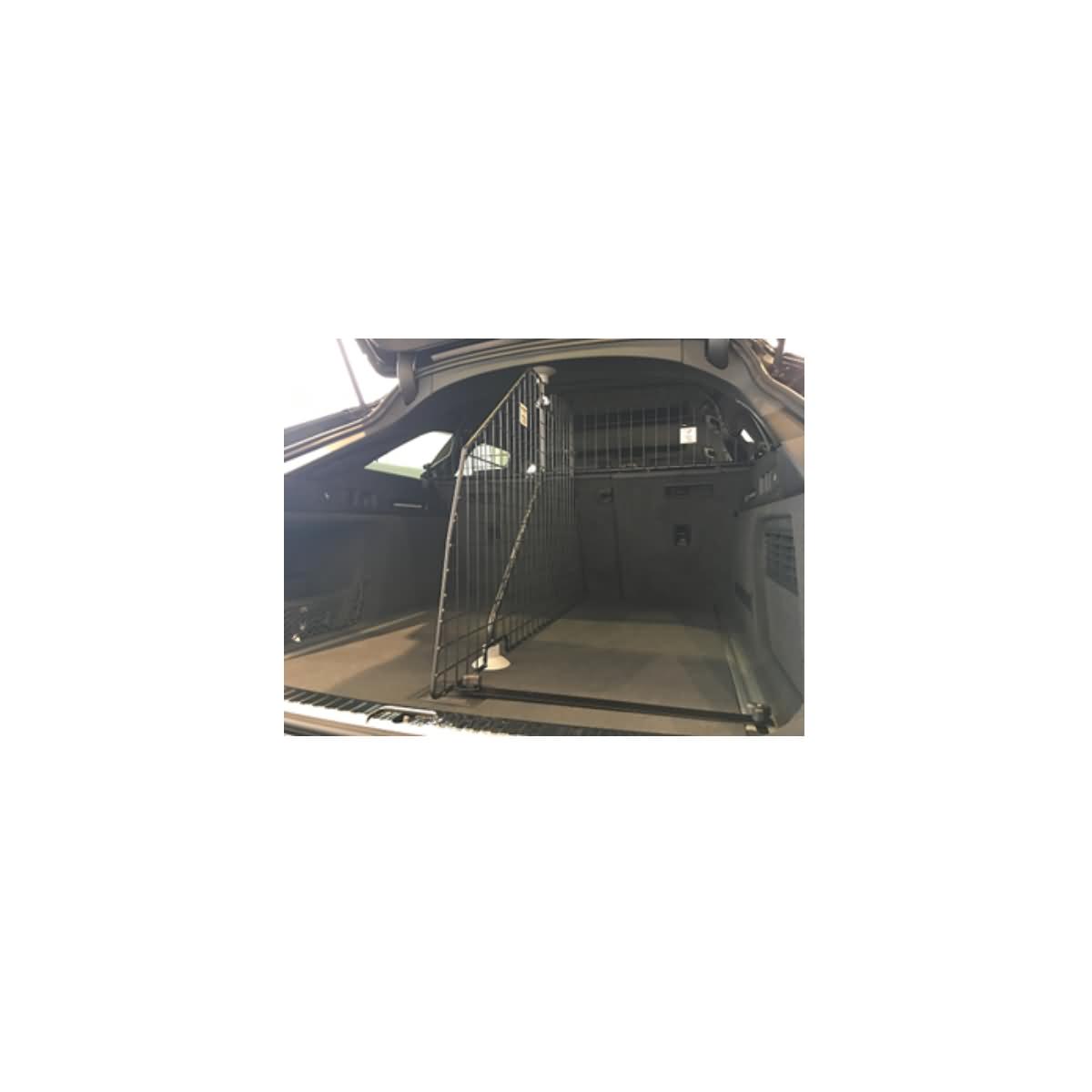 - Befestigung an das vorhandene Trenngitter hinter Rücksitzen