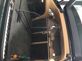 - Befestigung an das vorhandene Trenngitter hinter Rücksitzen
