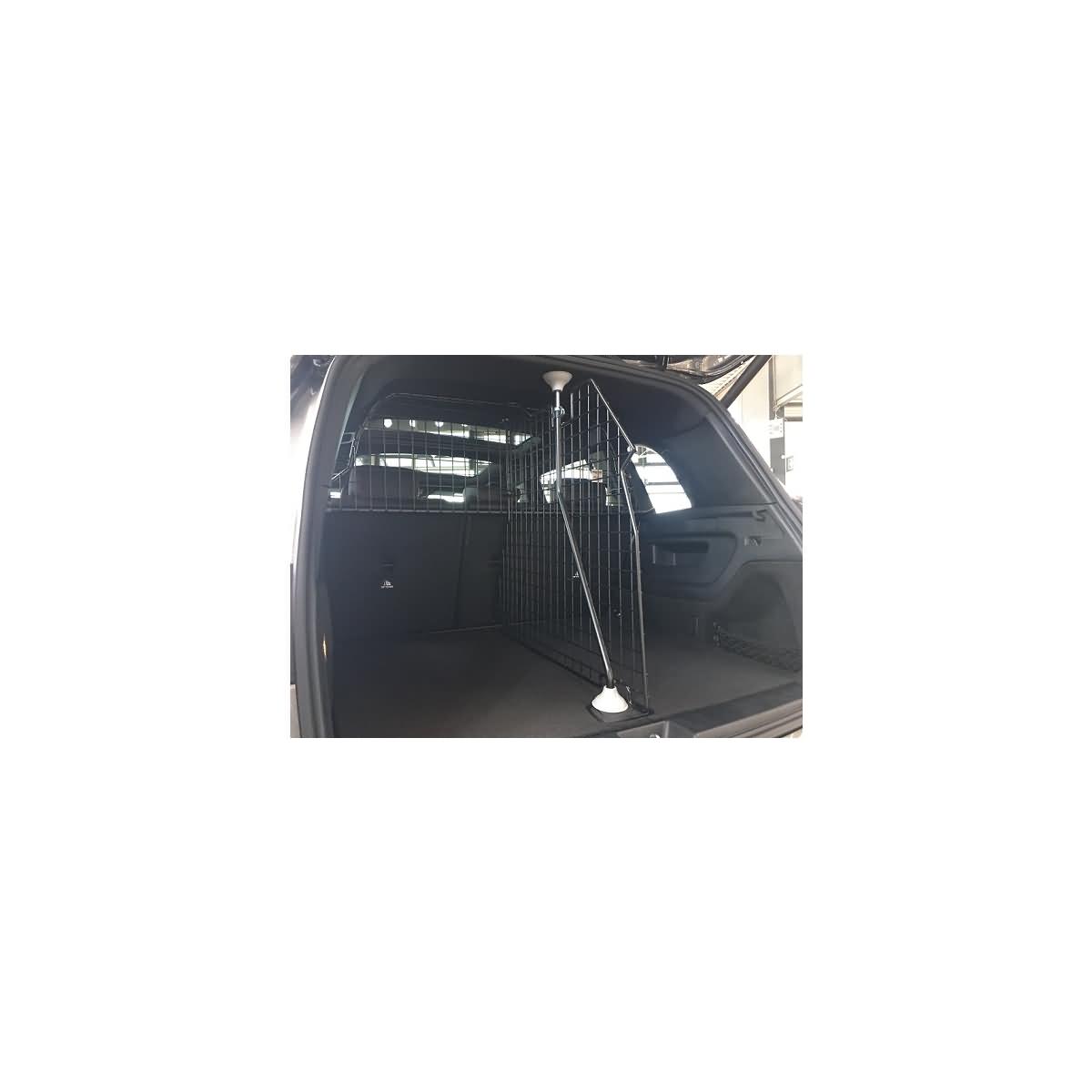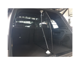 - Befestigung an das vorhandene Trenngitter hinter Rücksitzen