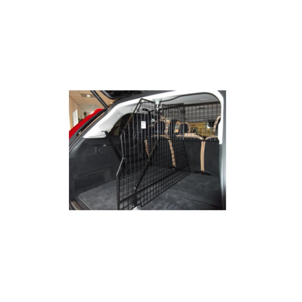 - Befestigung an das vorhandene Trenngitter hinter Rücksitzen