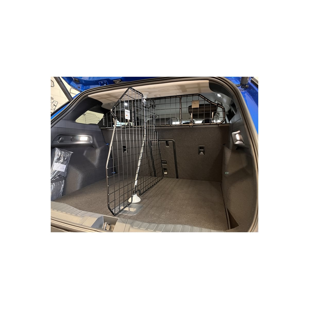 - Befestigung an das vorhandene Trenngitter hinter Rücksitzen