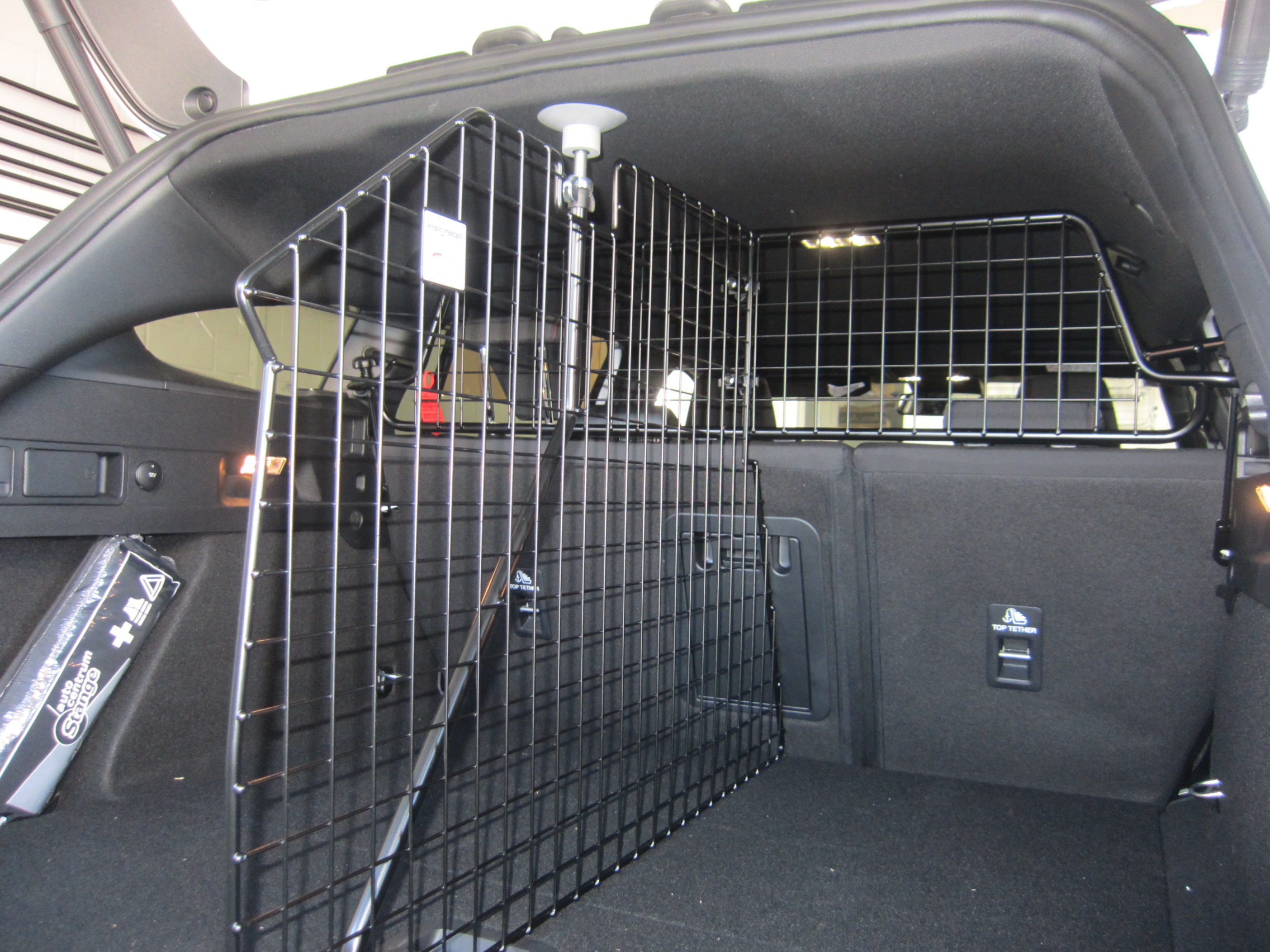 - Befestigung an das vorhandene Trenngitter hinter Rücksitzen