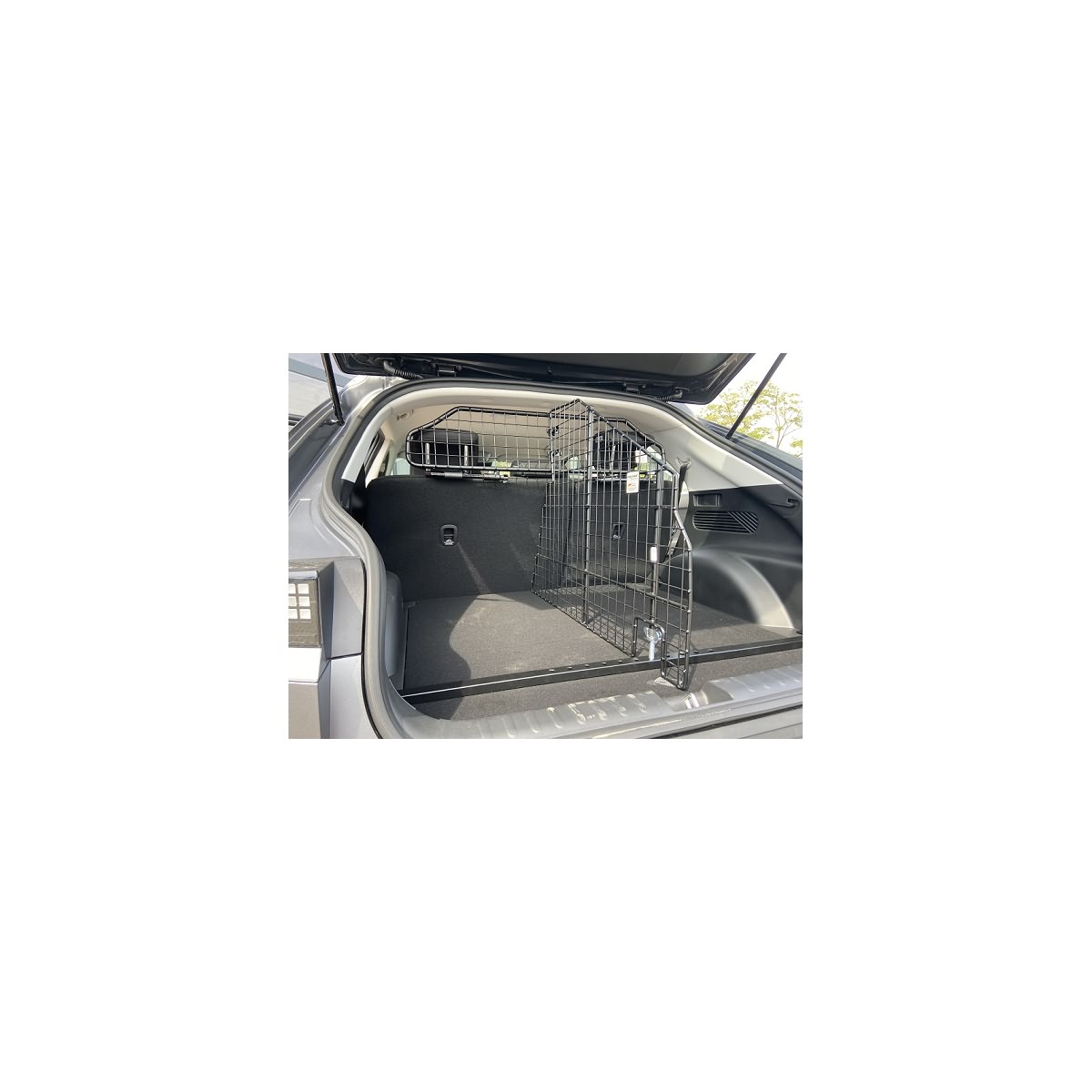 - Befestigung an das vorhandene Trenngitter hinter Rücksitzen