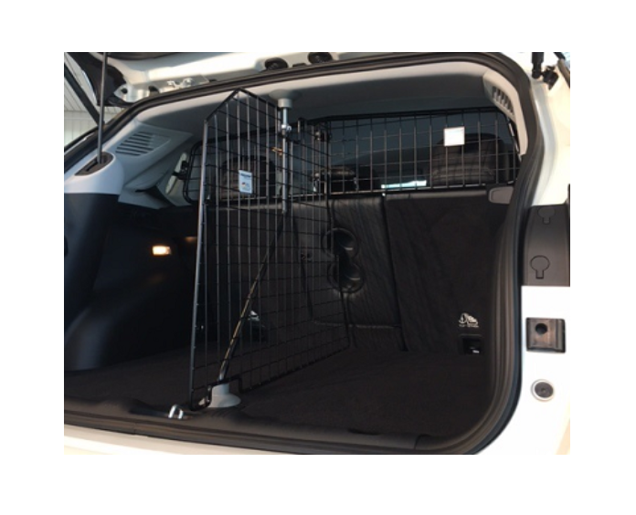 - Befestigung an das vorhandene Trenngitter hinter Rücksitzen