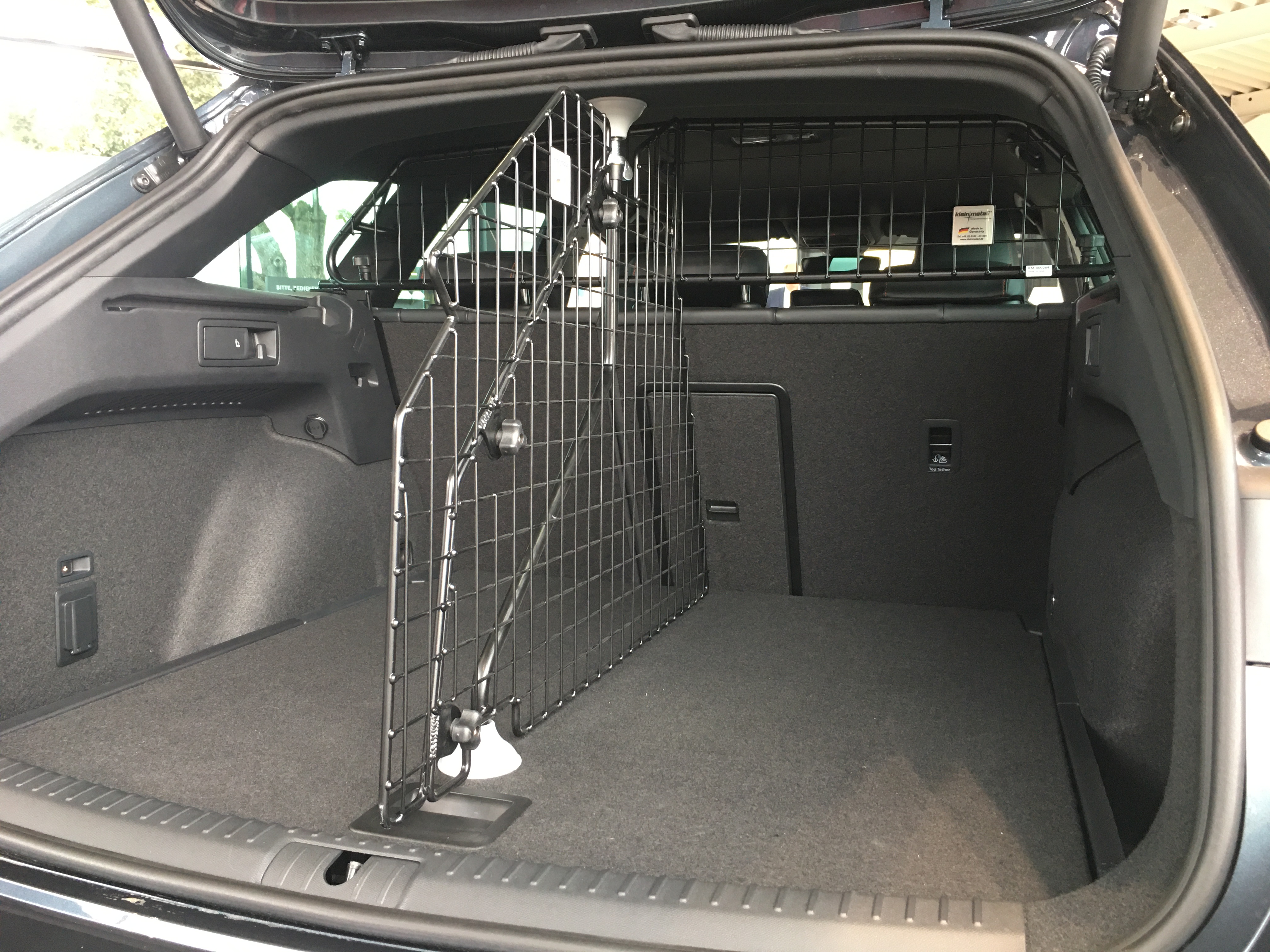 - Befestigung an das vorhandene Trenngitter hinter Rücksitzen
