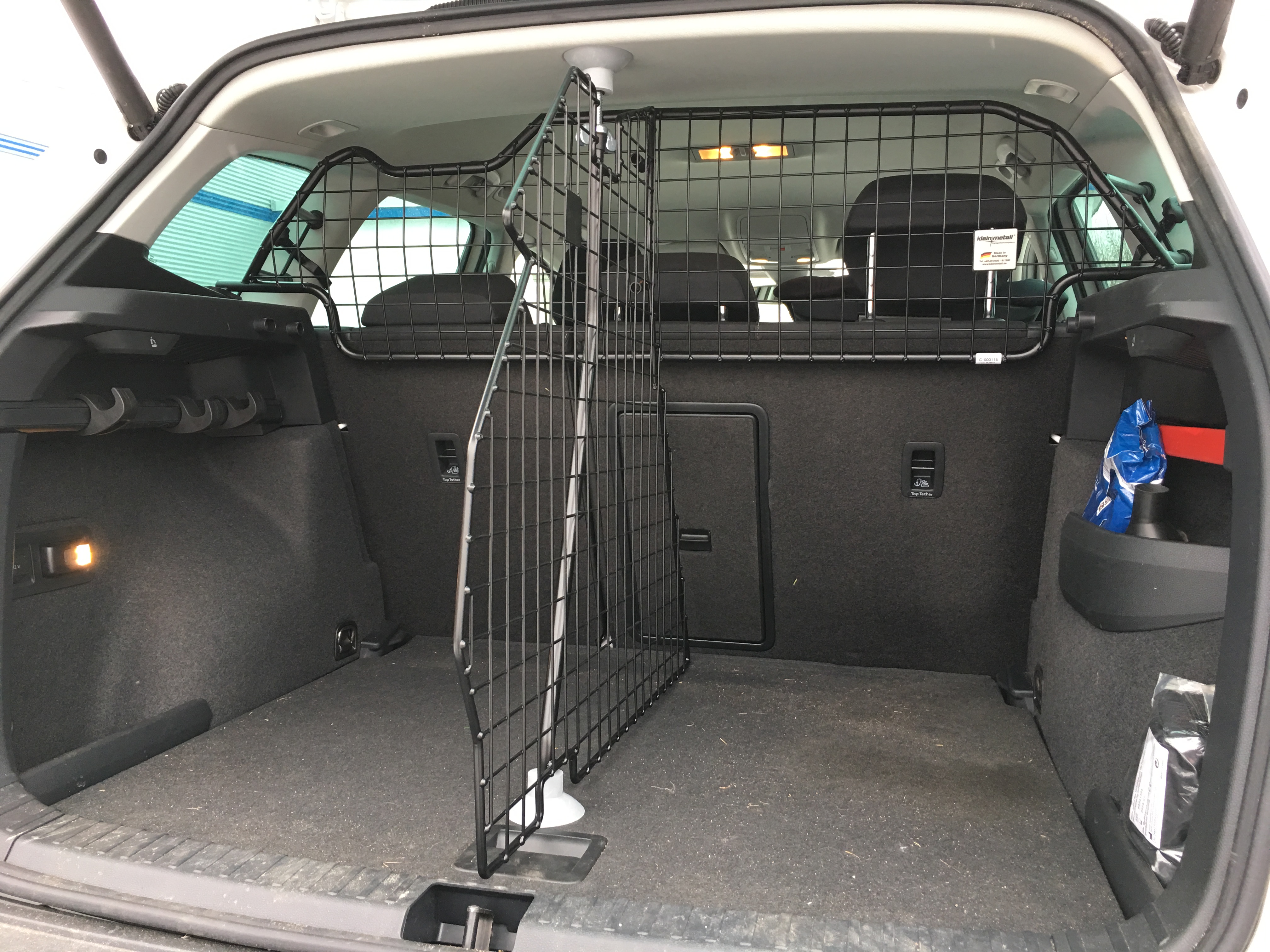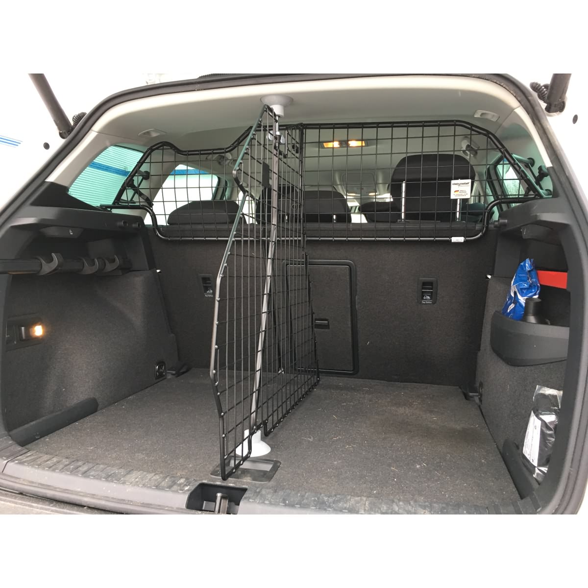 - Befestigung an das vorhandene Trenngitter hinter Rücksitzen