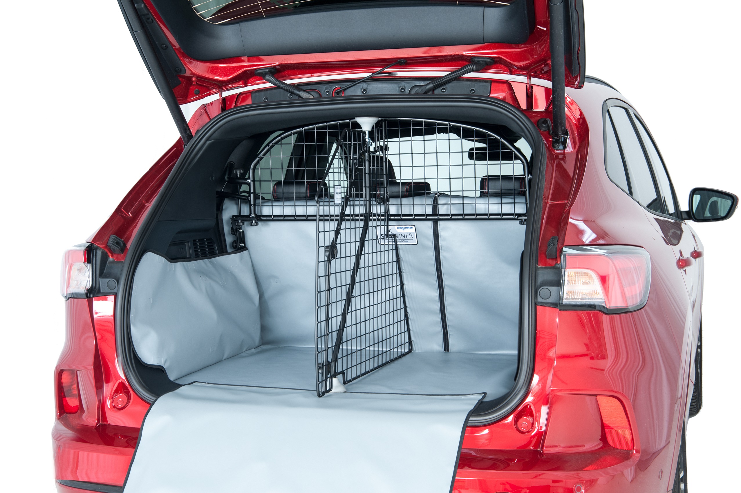 - Befestigung an das vorhandene Trenngitter hinter Rücksitzen