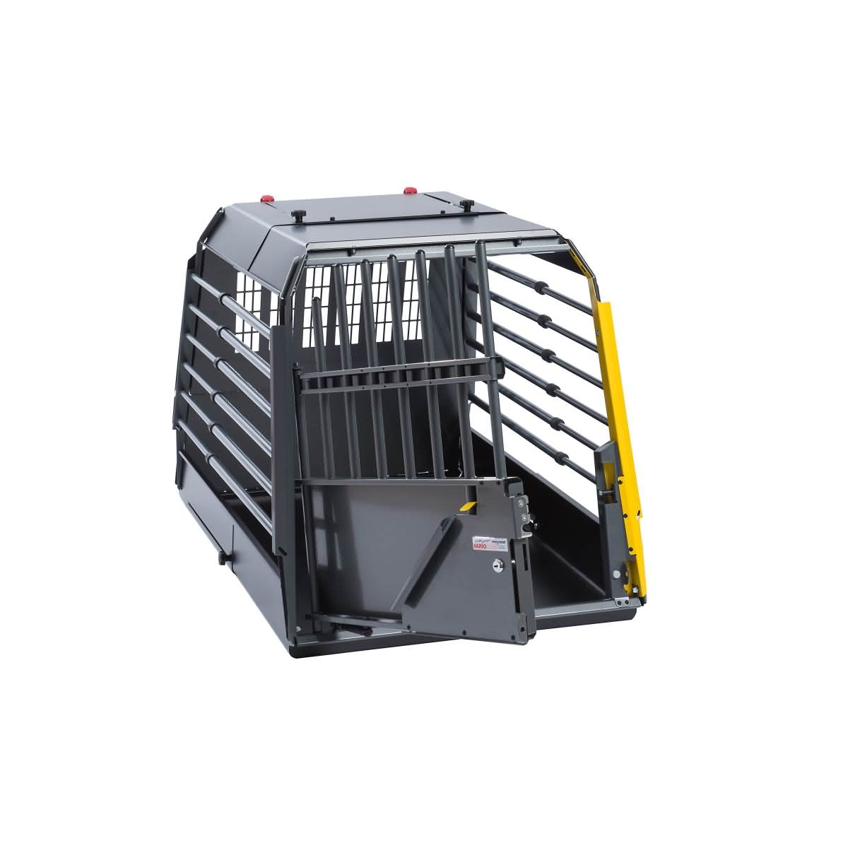Die Variocage ist individuell tiefenverstellbar und kann daher mühelos in viele Fahrzeuge integriert werden. Hierbei muss jedoch die Rücksitzbank im Fahrzeug vorhanden und entsprechend eingerastet sein.